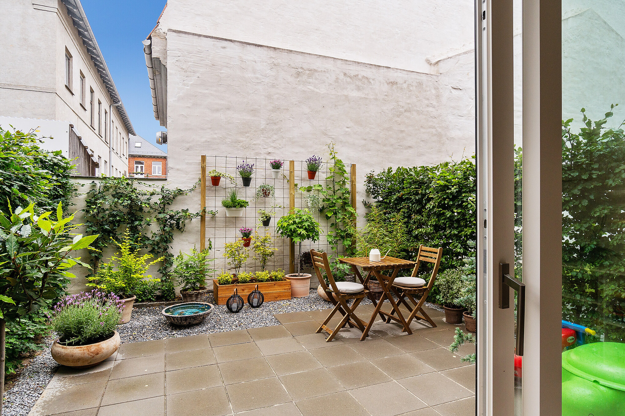 Apropos afskærmning så er haven anlagt med en færdigvokset hæk, så I med det samme kan opholde jer ugeneret i den hyggelige, solrige have. I bliver del af en sund ejerforening med et godt naboskab. Bilen kan parkeres i den private parkeringskælder, hvis altså ikke I færdes med den kommende Metro fra Aksel Møllers Have. I får roen fra den stille villavej kombineret med byens liv med specialbutikker og spisesteder- eksempelvis Frederiksberg Centret blot én kilometer fra adressen. Endvidere er der gåafstand til pasningstilbud og skoler, så hverdagen glider let. Se mere information omkring ejendommen her.
