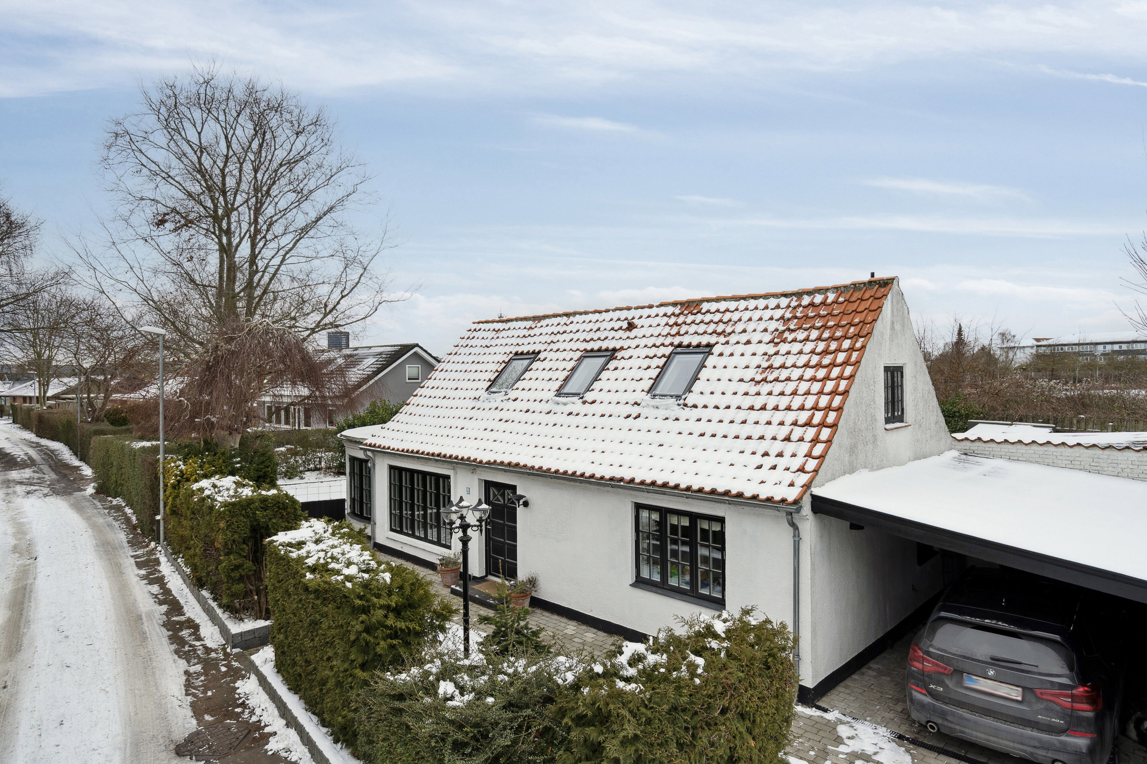 Udenfor fortsætter oplevelsen i den ugenerede og stemningsfulde have, som opleves som en naturlig forlængelse af boligens opholdsrum. Her er der plads til både stille stunder og sociale sammenkomster i grønne omgivelser. Her har man 3 skønne terrasser at vælge imellem, så der er mulighed for at få sol eller læ på alle tidspunkter af døgnet. Derudover har man en dejlig stor græsplæne, så børnene frit kan lege imens man kokkerer i det åbne køkken eller sidder på terrassen og nyder tilværelsen. Til sidst men ikke mindst har man en stor garage, som både kan bruges som træningsrum, hobbyrum, eller fx teenageafdeling samt et praktisk bryggers med vaskefaciliteter.