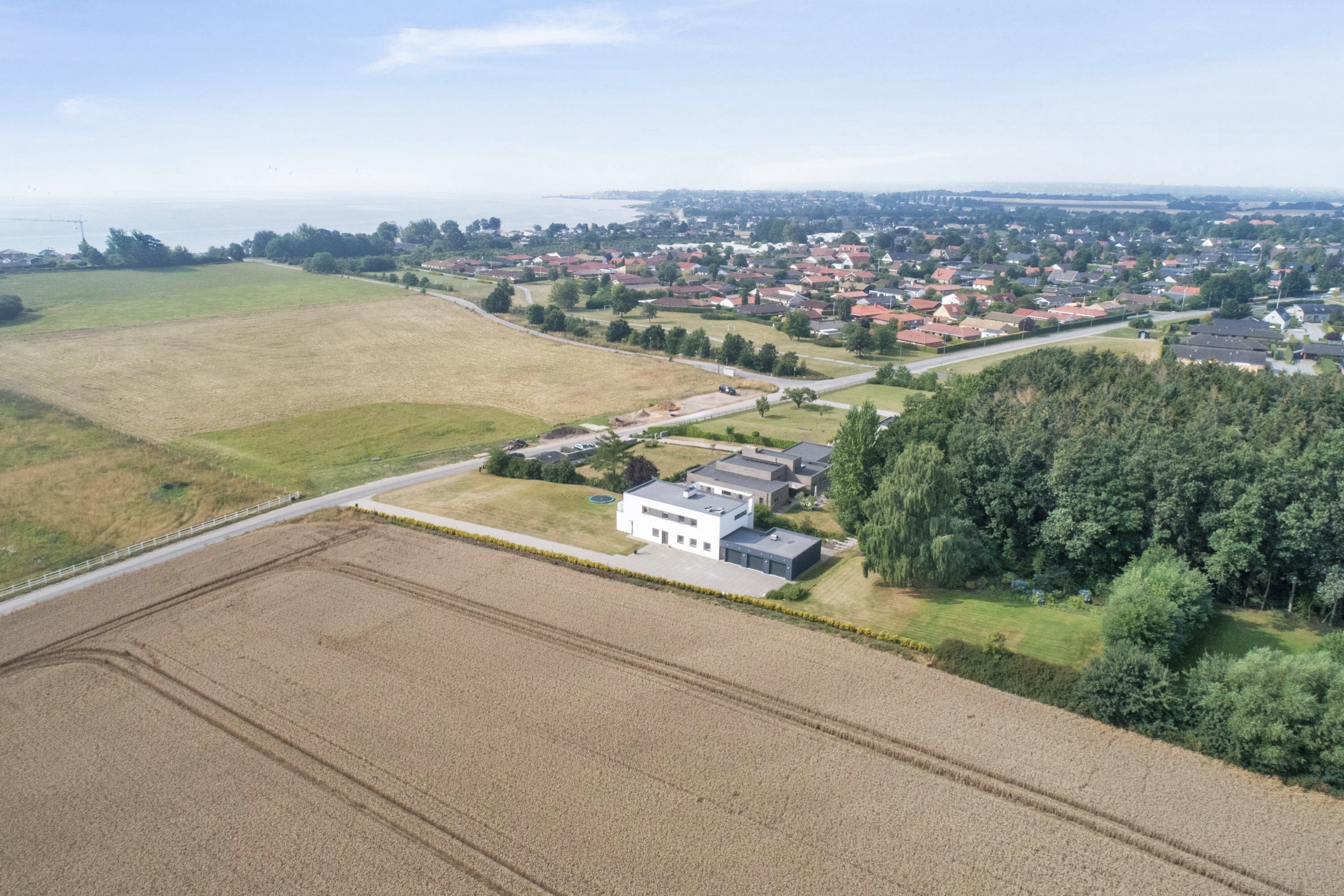 Allerede ved ankomsten fornemmer I den arkitektoniske stringens og de gennemtænkte linjer, som præger villaens udtryk. De store terrassemiljøer skaber en naturlig forlængelse af boligen og giver jer optimale rammer for at nyde solen, udsigten over markerne og de lange sommeraftener i private omgivelser. Den store grund understreger følelsen af luft og frihed og giver rig mulighed for både leg, afslapning og udeliv.