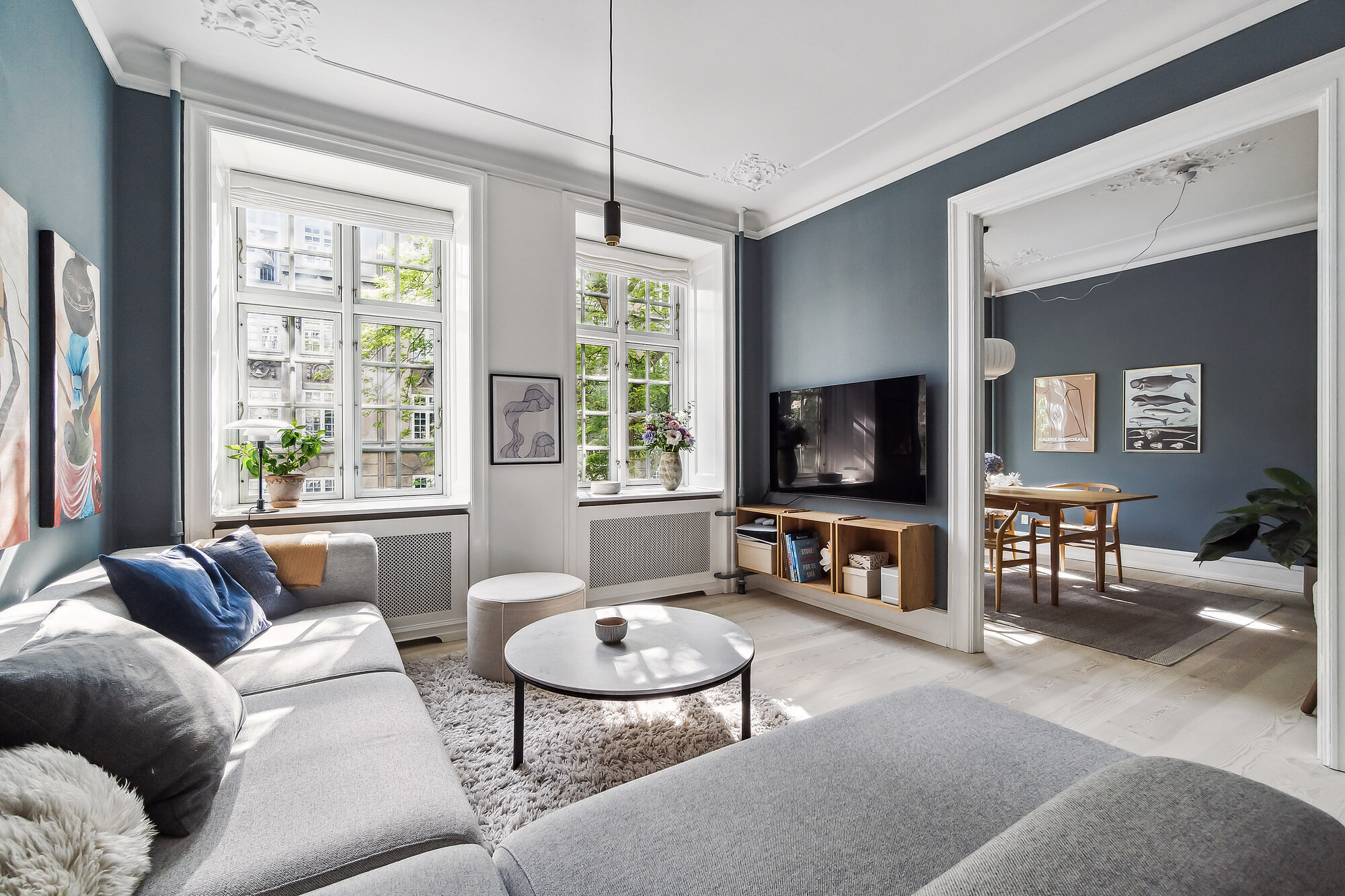 Således får dansk design og snedkererede møbler følgeskab af plankegulve og romantisk stukkatur, mens altanen kalder på en solrig stund efter en lang dag på kontoret. Med to stuer og et soveværelse er der plads til nærmest alle former for boligdrømme her midt i byen, hvor I bor tilbagetrukket på en fredfyldt, blind vej nær alt, hvad hjertet kan begære.