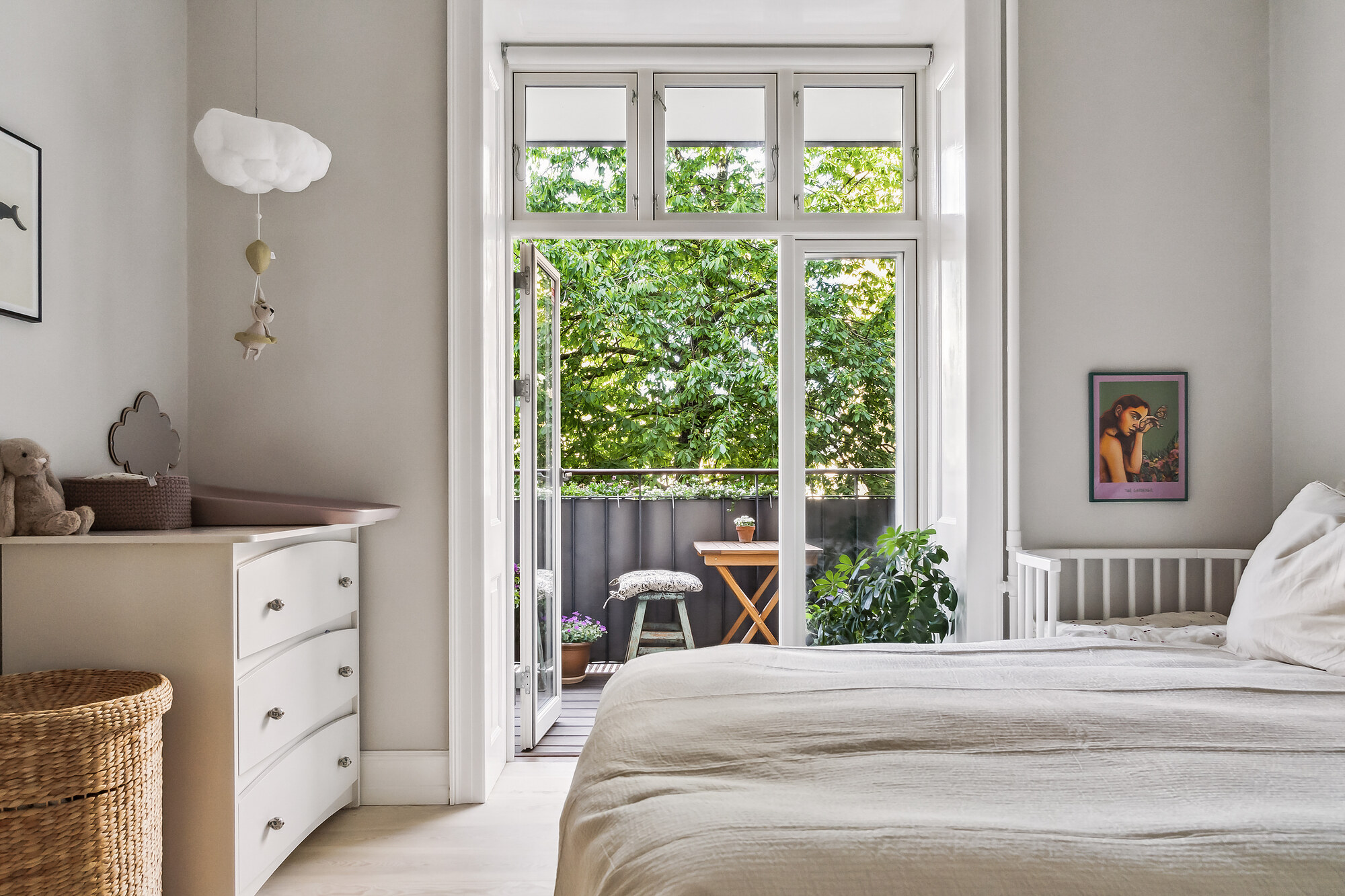 Soveværelset har den skønne, vestvendte altan tilknyttet, og det store badeværelse med indbygningsarmaturer er som taget ud af Bolig Magasinet. På vej ud kan I kaste et blik på den rummelige entré med opbevaringsplads, mens næste es i ærmet er den lukkede baggård med en grøn have, hvor I snart nyder sommeren.